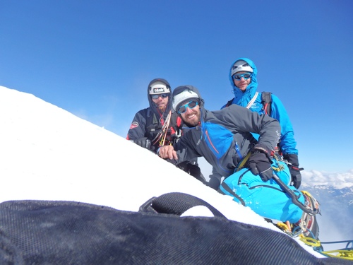 V BC se vítáme s Letošem a Pítrsem. Severní vrchol nedali kvůli sněhovým převějím na vrcholovém hřebenu.