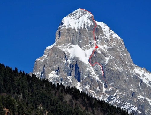 Resumé: Vylezena kombinace jižního hřebene a Khergianiho cesty na jižní vrchol Ušby (4710m).