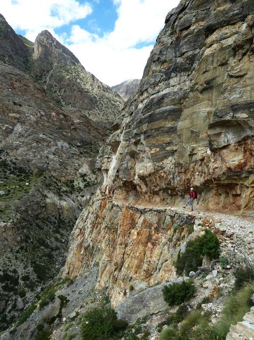 Fu (Phu Gaon ve výšce drobně nad 4000 m n.m.). Je to velmi staré, původně tibetské město. Den trávíme aklimatizací a prohlídkou přilehlého posvátného chrámového návrší. Další den za pár hodin přicházíme do místa našeho základního tábora (4840 m n.m.). Počasí nám přeje, kromě prvního dne pochodu je již po zbytek expedice hezky, akorát občas nějaké ty mraky a trochu fouká.