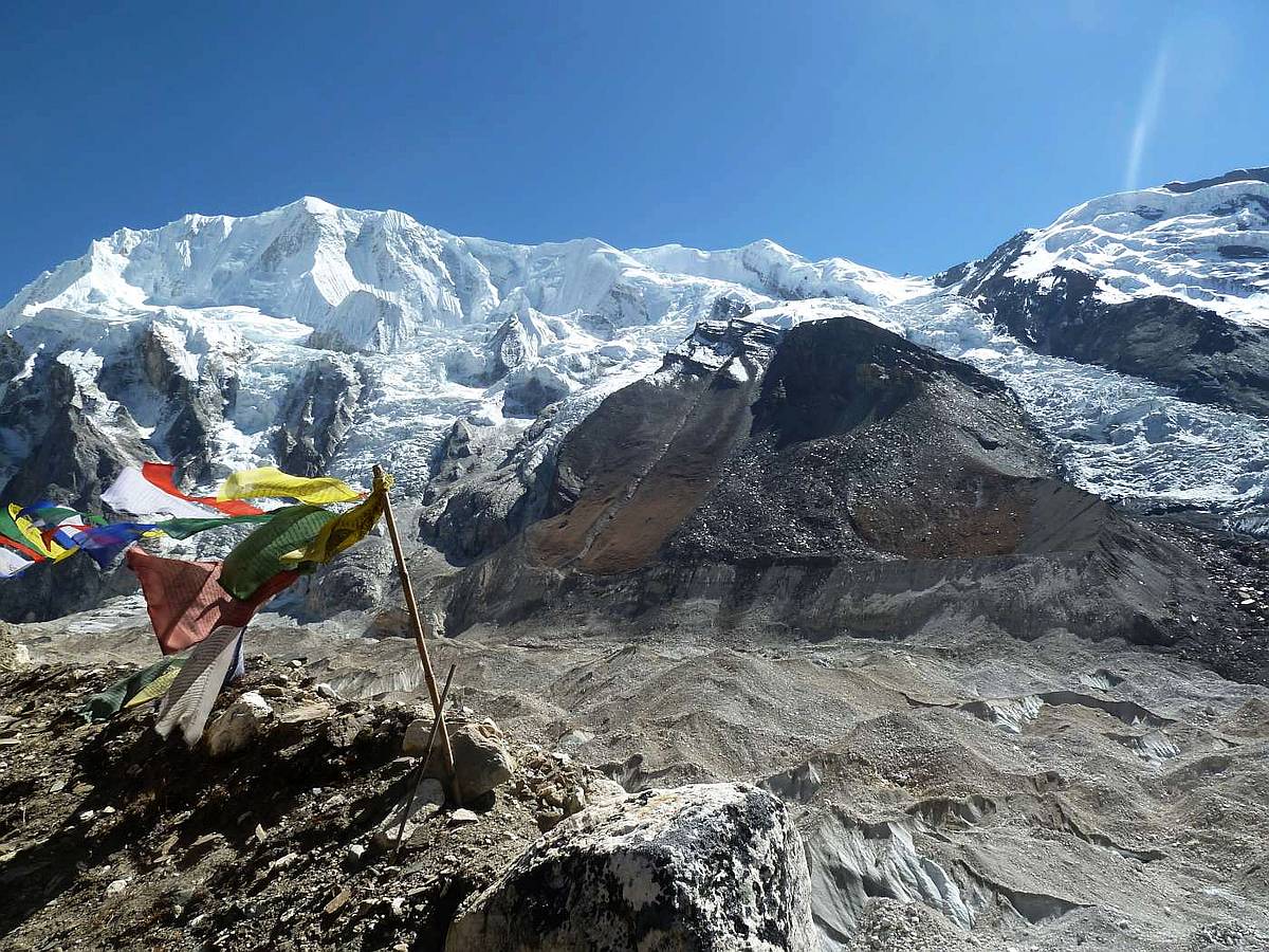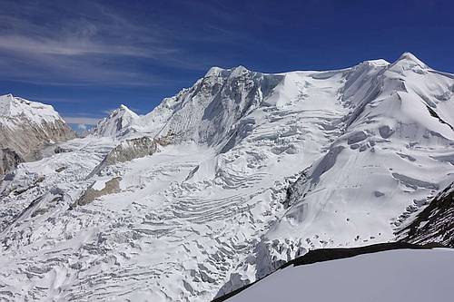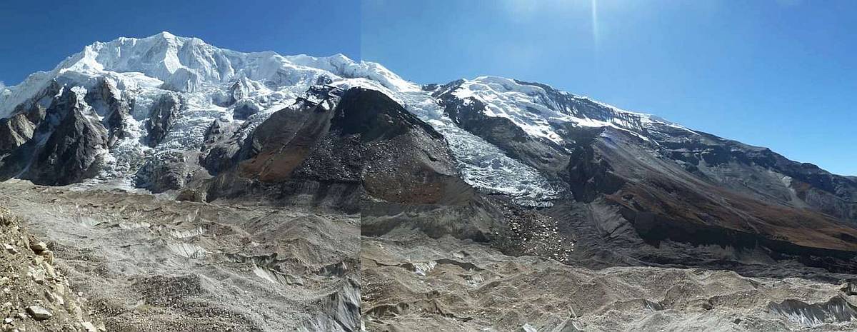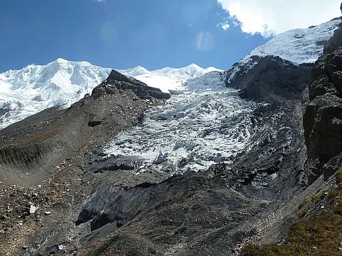 Pohled na Gyaji Khang z nástupu pod ledovcem SZ stěny (hi res)