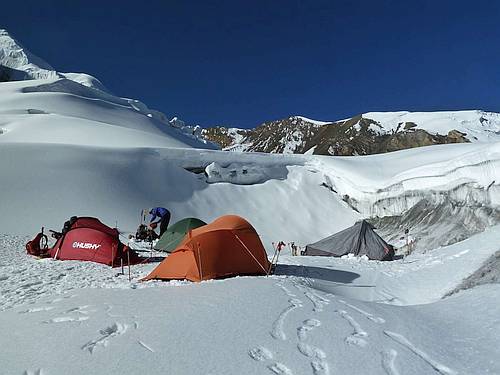 Náš 1. tábor (5700 m) při vrcholovém pokusu (hi res)