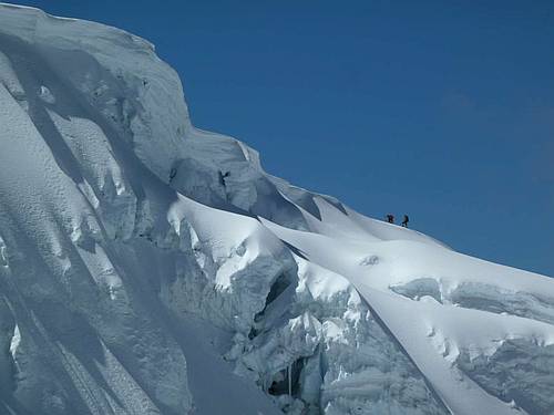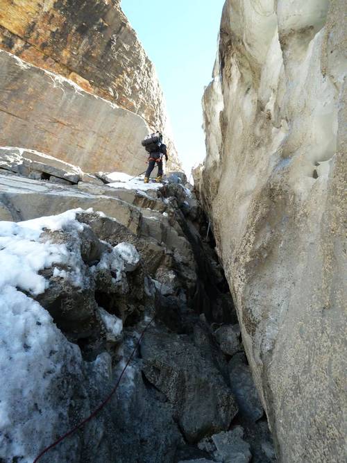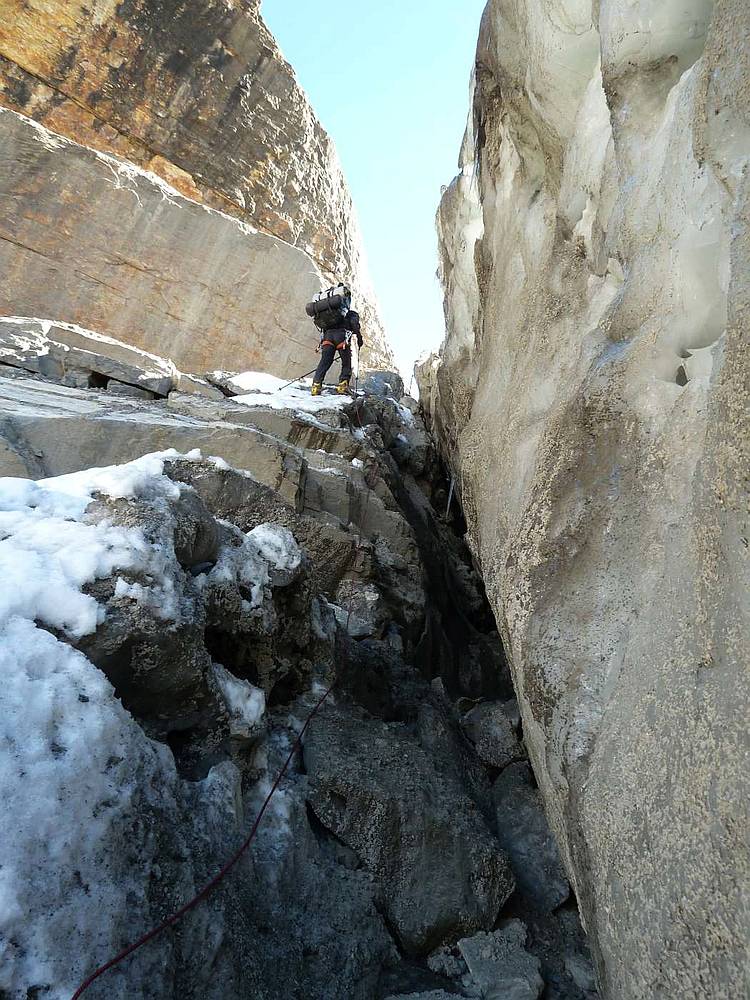 Gogo přes ledovec, uprostřed ledovec našeho výstupu a na obzoru hřeben normální cesty (hi res)