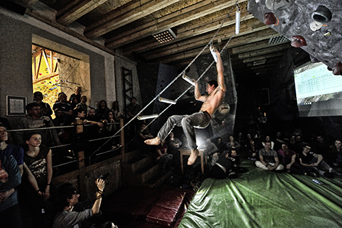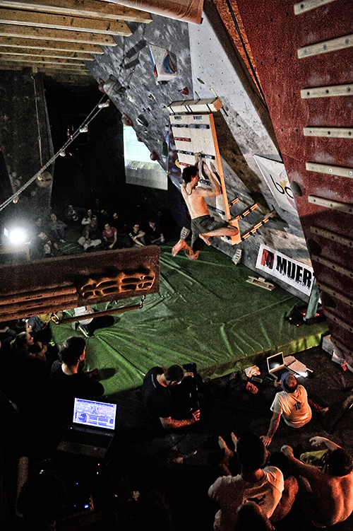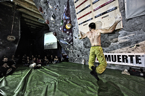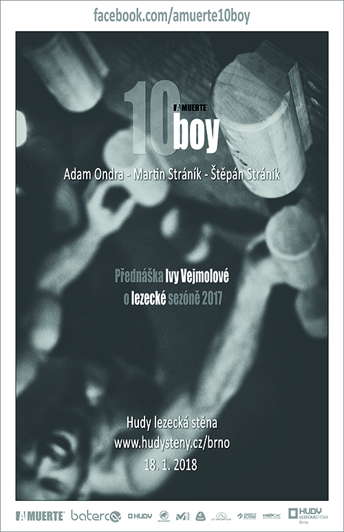 Pohasla světla boulderové haly, rozsvítily se LED reflektory, reprobedny se rozdrnčely lehkým Drum and Bassem a do mikrofonu zahlaholil povědomý hlas špičkového sportovního lezce 90. let: „Vítám Vás na finále A MUERTE 10boye, jmenuji se Rosťa Tomanec a dnes to tady povedu!“ Divoká karta se udělila i zde, kdy na poslední chvíli dorazil Štěpán Volf a po odsouhlasení ostatními finalisty nastoupil jako 11. Podrobné vypisování průběhu finále by nedostatečně vystihlo parádní výkony na mučidlech i v diváckém kotli. To se musí zažít na vlastní oči, uši, prsty… Technické přestávky při změně sklonu campus boardů, či jejich osazení, vyplňoval Rosťa v debatě s Adamem o různých tématech. Srovnávání lezeckých generací dodávalo atmosféře tu správnou šťávu. Vítězství tentokráte urval Martin Stráník ve světovém rekordu, v závěsu za ním skončil jeho bratr Štěpán těsně před Adamem. Prize Money od A MUERTE si odnesli mladí a nadějní v podobě Kuby Konečného, Štěpána Volfa a Martina Chytila. Spolu se zbylými finalisty si polepšili také o Vouchery od garážové firmy BATERCA a cereálními tyčinkami od fy NUTREND.