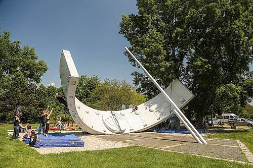 Bouldrovou soutěž na městské plastice Slnečné hodiny pořádají tuto sobotu 26.5. v Bratislavě v areálu Ekonomické univerzity. Chátrající skulpturu z 80. let minulého století místní lezci v roce 2015 za pomoci města zrevitalizovali a na zadní straně osadili chyty pro bouldering.