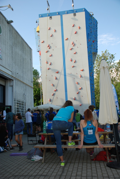 Nastala sobota - den „D“ a hodina „H“. Samotný závod byl pořádaný na venkovní stěně pod širým nebem v těsné blízkosti poměrně malého boloňského lezeckého centra, které sloužilo jako zázemí pro závodníky.