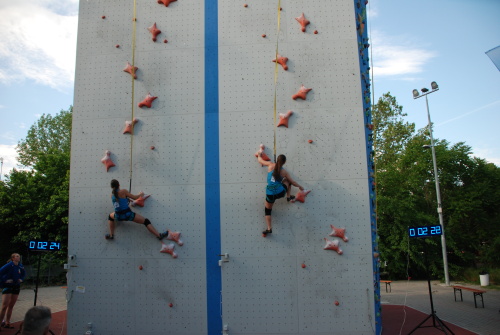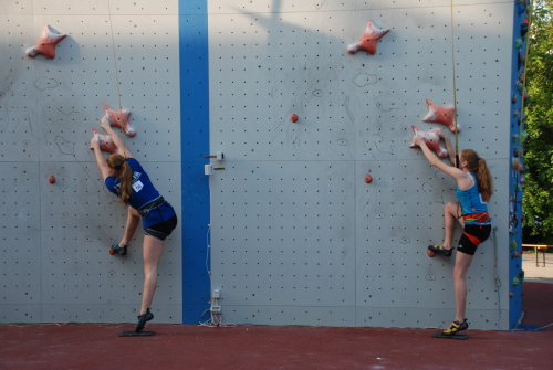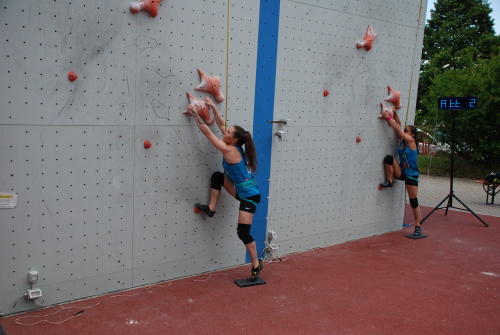 Zatímco Denisa je reprezentační nováček startující zcela na své náklady a s lezením začala teprve nedávno, tak Sára je již zkušený reprezentant a na výsledku je to znát. Zatímco v prvním pokusu Denča dává čas 15:69, tak Sára zdolává boloňskou standardku za 13:05.