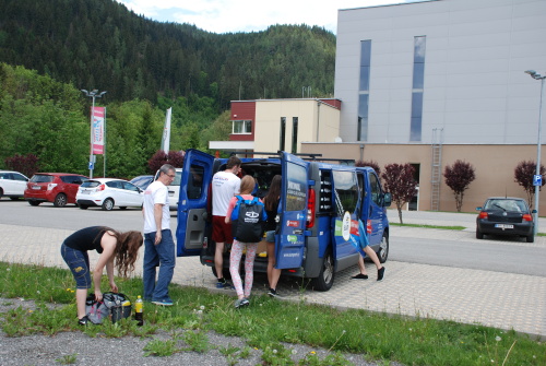 Druhá, početnější část repre, vyrazila dodávkou až ve čtvrtek těsně před závodem z Brna. Ve složení: neoficiální leč faktický trenér mládežnické rychlostní repre Petr Burian, jeho asistent, manager, kuchař, řidič výpravy a faktický sponzor českého rychlolezení v jedné osobě jeho otec Petr Burian st., závodníci Sára Urbanová (Klajda), Denisa Mercová, Terezka Cibulková (Climbing Technology, Saltic, Beal), Čeněk Babača a moje maličkost, co by doprovod a dokumentarista.