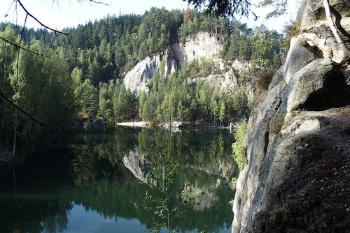 Na místě dnešního rybníka stávaly skalní věže. Jezero vzniklo vytěžením skal na (tuším) sklářskou surovinu. Koncem 80 let se pak ve skalách udělaly velice necitlivě cesty pro turisty (s použitím ocelových travers zabetonovaných do skal, namísto starých cest na dřevěných pilotech).Proč ochranáři neregulují ty masy turistů?Ještě před lety průvodci stříleli u jednoho ze vstupů dělem, aby ukázali, jaká je ve skalách ozvěna. Co na to páni ochranáři? Na to si netroufnou, vyskakují si jen na jednotlivce, kteří toho ještě v podstatě moc neničí.