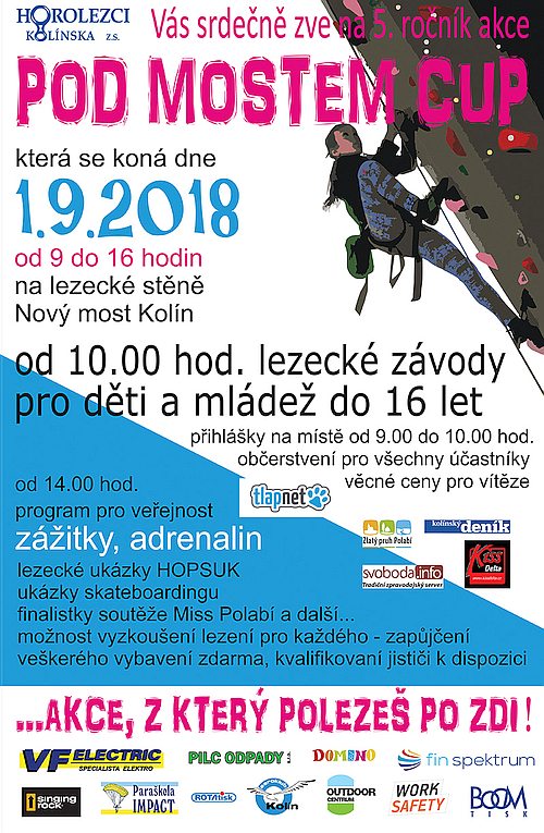 Uskuteční se na Kolínsku na lezecké stěně Nový most Kolín. Akce je určena dětem a mládeži od předškolního věku do 16 let a připraven je i doprovodný kulturní program pro veřejnost. Akce začíná v 9 hodin.