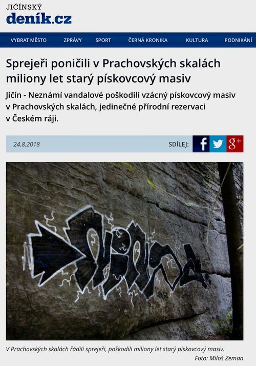 co na to říct, je to už výchovou v rodině; současnost té bídě přeje,nepřemejšlíš,vše se relativizuje,každý padouch má mantru moje práva, žádný respekt,takže nemůže respektovat něco tak pro něho odtažitého jako přírodu a přichází to myslím z měst.K té empatii(schopnost něco prociťovat)každý režim na ni cílí, nejdřív něco devalvuje, a pak redefinuje mejnstrýmem. Opakem hlouposti je chytrost, opakem moudrosti je stupidita.ALe třeba to ten "sprejer" přehodnotí a sám to odstraní.