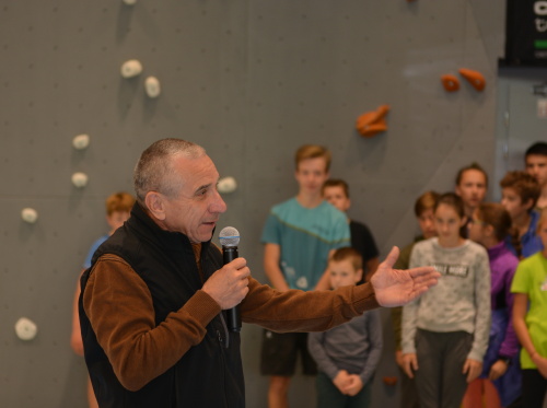 Poté přítomné ještě přivítala Zorka Hradilová, která vede místní horolezecký oddíl při Středisku volného času a i ona se s přítomnými podělila o to, jak velkou má radost z dokončení nové lezecké stěny k oddílovému jubileu. Je to totiž přesně dvacet let od založení místního horolezeckého oddílu při SVČ, který sama po celou dobu vede a na novou tréninkovou stěnu čekala dlouho. Stará stěna již dávno neodpovídala potřebám oddílu a dnešním standardům.