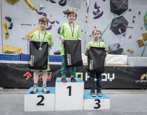 Závod dětí jsme letos rozdělili na dvě poloviny. Nejprve startovali nejmladší kategorie D 2009 a mladší spolu s kategorií C 2008 a 2007. Stavěči nakonec vhodně umístili na stěnu 13 bouldrů, na kterých se startovní pole velmi pěkně rozřadilo a hlavně žádný závodník neodešel bez TOPU. Pevně věříme, že to bude pro malé lezce více než motivující. Vítězi kat. D se stali Adéla Bodanská a Dan Školař. V kategorii C byli nejlepší Jan Štípek a Lea Svobodová.