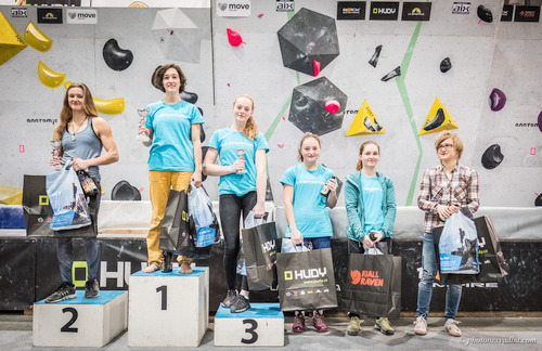 Ceny pro finalisty předal Radek Kronika, marketingový ředitel HUDY a Evka Bednářová, která spolu s Míšou Bielákovou mimo svou běžnou práci na HUDY stěně Brno měly na starost registraci a komunikace se závodníky, za což jim velký dík.