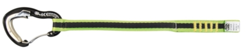 od české firmy Rock Empire. Nejkratší šáhlo v přehledu je expreska s dvěma karabinami, která je natolik vyztužená, že je možno ji cvaknout jen za popruh bez uchopení přímo karabiny. Karabina na opačné straně /na obrázku hnědá/ už není vyztuženě spojená a nelze za ni při cvakání šáhlo držet. Cvakací karabina jde lehce, ale ne o moc lehčeji než běžná drátová karabina. Cvaknutí do borháku nebo svrchu do kruhu asi bezproblémové, ale do volně se pohybujícího kruhu zespodu už problematičtější. Bohužel nemám manipulaci s ní ověřenou v praxi.