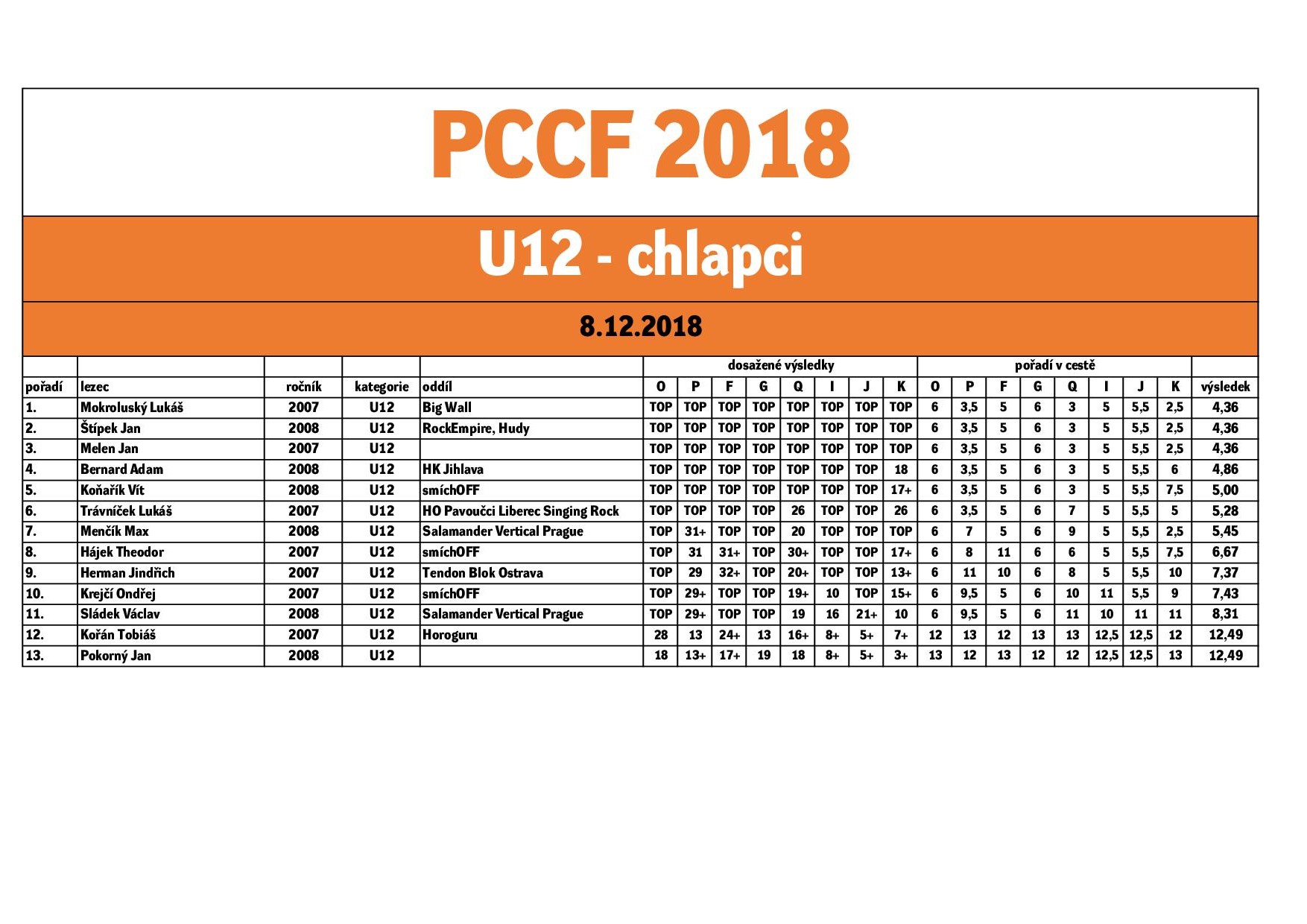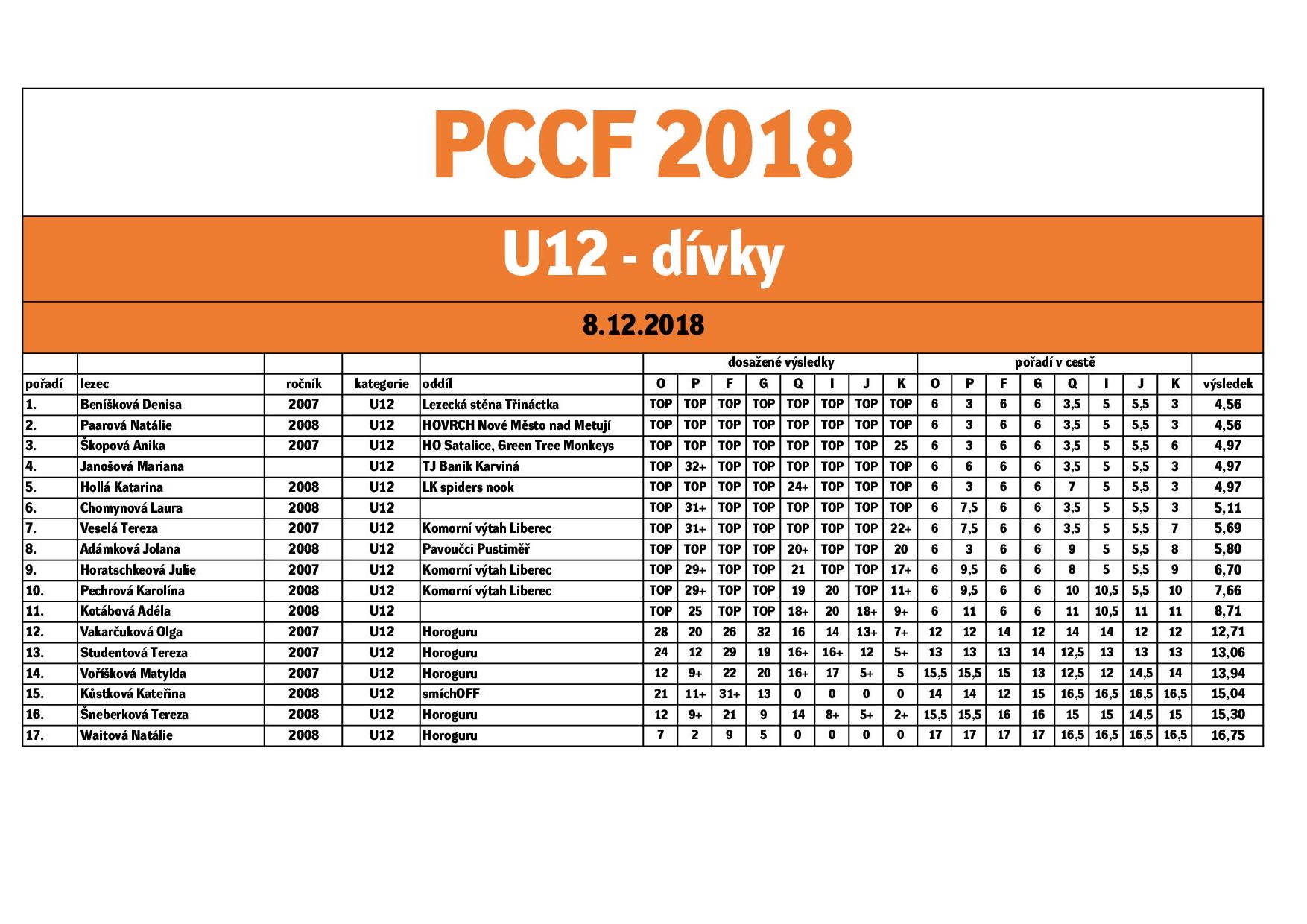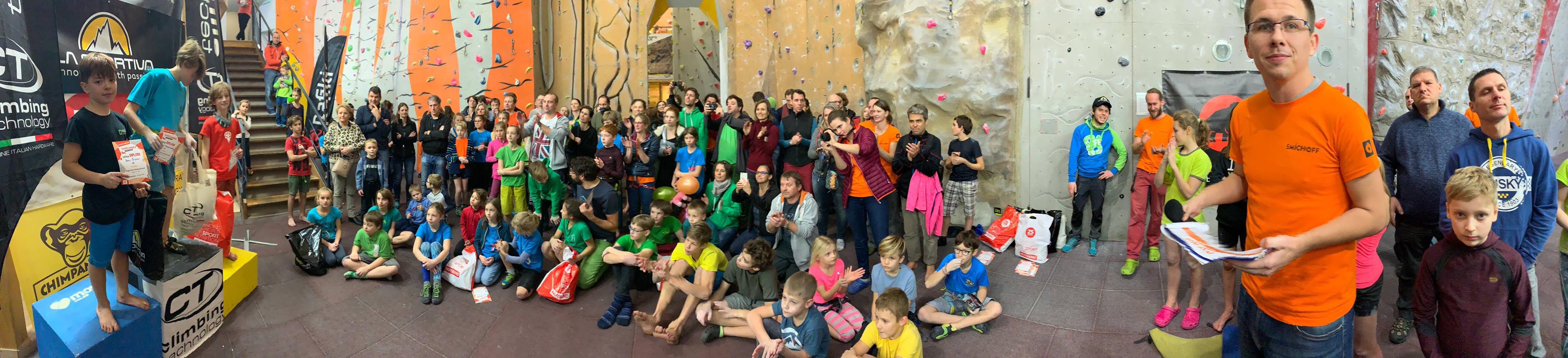 Za organizátory si musím posypat hlavu popelem za malou důvěru v lezecké schopnosti naší mládeže. Honza Zbranek a jeho Move Holds team postavil dle našeho rozkazu cesty až do obtížnosti 9+ UIAA. Děcka nám rok od roku neuvěřitelně sílí a lezou neskutečné pecky, což mělo za následek, že například v kategorii chlapci U12 byli na bedně 3 borci, kteří nám TOPovali všech 8 závodních cest a o celkovém výsledku rozhodoval čas přelezu.
