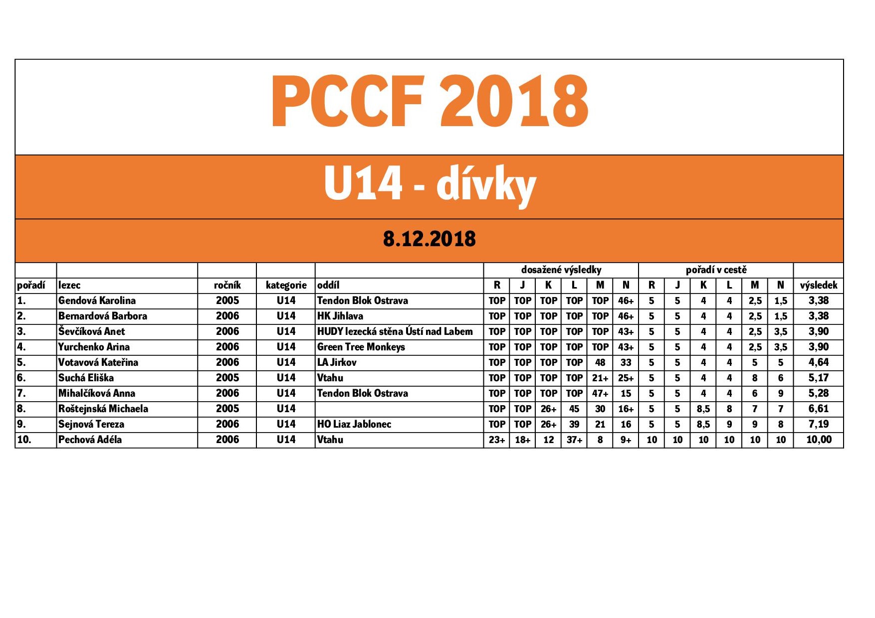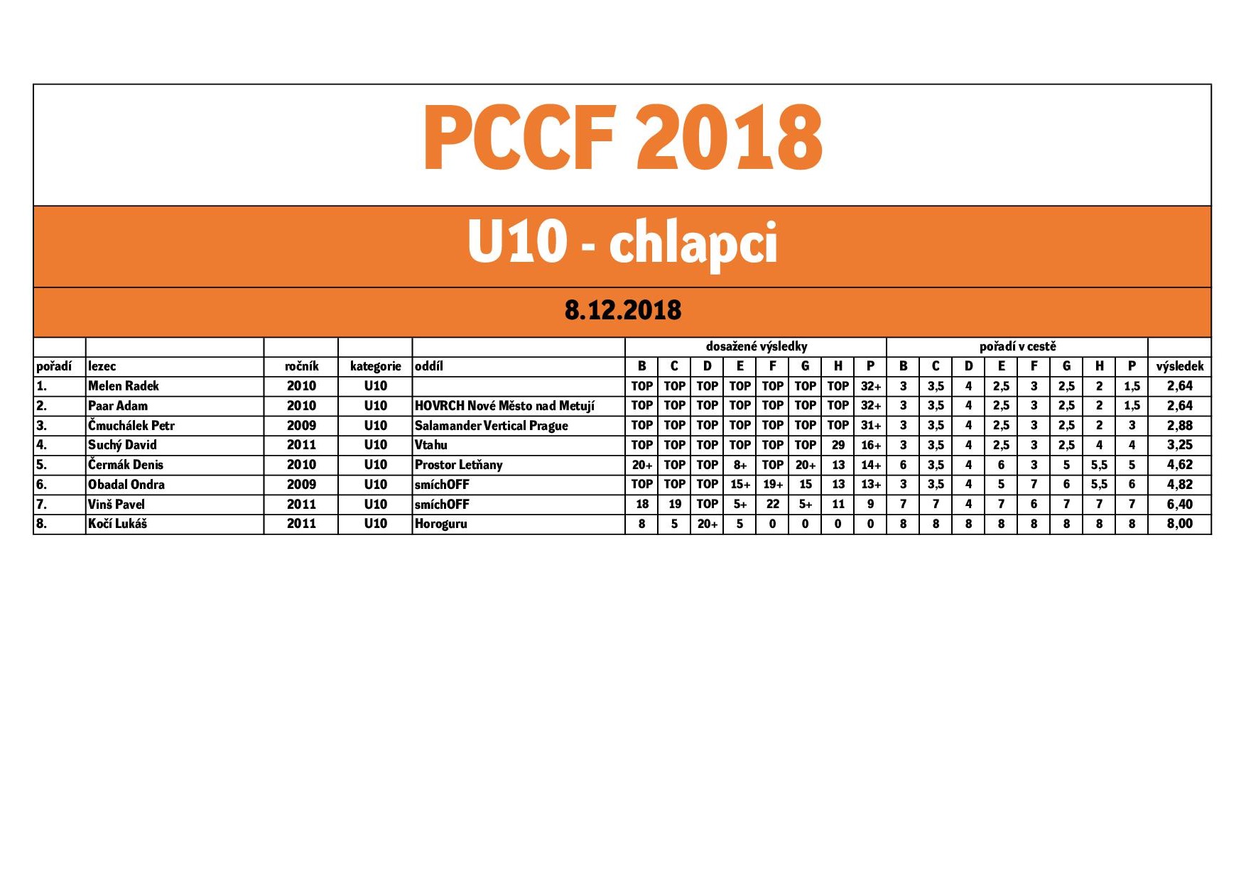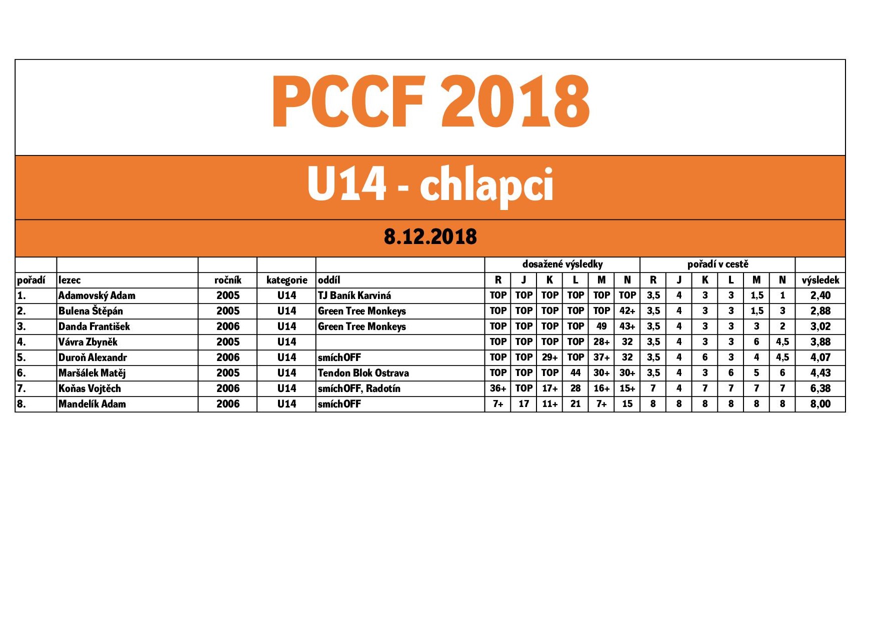 Za organizátory si musím posypat hlavu popelem za malou důvěru v lezecké schopnosti naší mládeže. Honza Zbranek a jeho Move Holds team postavil dle našeho rozkazu cesty až do obtížnosti 9+ UIAA. Děcka nám rok od roku neuvěřitelně sílí a lezou neskutečné pecky, což mělo za následek, že například v kategorii chlapci U12 byli na bedně 3 borci, kteří nám TOPovali všech 8 závodních cest a o celkovém výsledku rozhodoval čas přelezu.