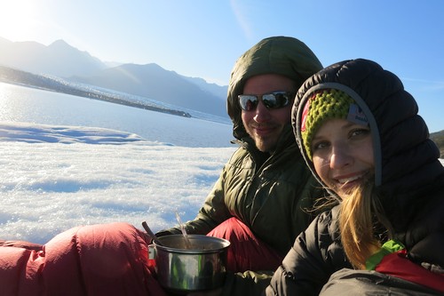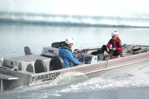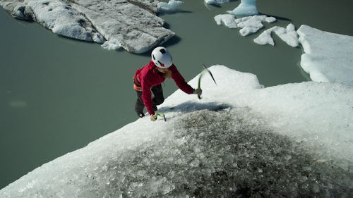 Zatímco většině z nás se tají dech při pohledu na otáčející a bortící se mas ledu, Lucka odhodlaně bere cepíny, mačky a jde si na pár ker rovnou vylézt. Lano není třeba. Je větší pravděpodobnost, že přežije pád do ledové vody bez lana, než kdyby se kra otočila nebo zbortila a byla k ní přivázaná. Ledové kry si žijí vlastním životem a brzy poznáváme, že není radno si s nimi zahrávat. Na místě přes noc kempujeme. Máme tedy možnost pozorovat, jak se kry, po kterých Lucka ještě před pár hodinami lezla, bortí a ztrácí v hlubinách ledové vody. Je to úchvatná, ale zároveň děsivá podívaná.