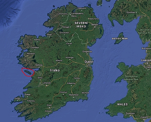 souostrovi se jmenuje Aran Islands a ten ostrov, nejvetsi v souostrovi, Inis Mor (znamena velky ostrov).