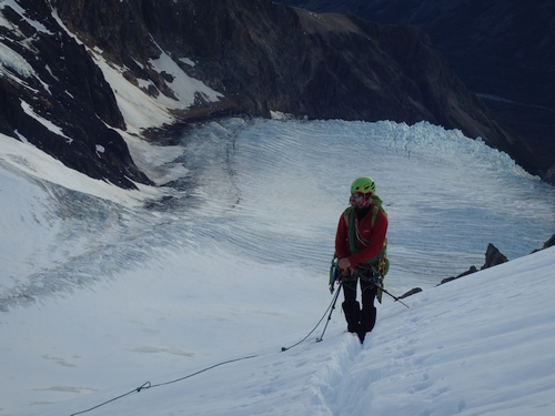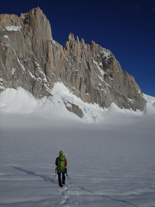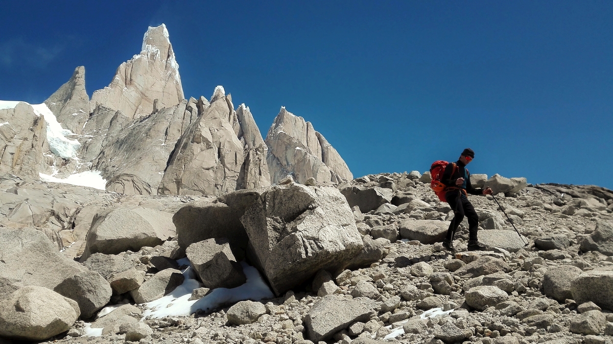 005_Vašek zostupuje z El Mocho v pozadí Cerro Torre (hi res)