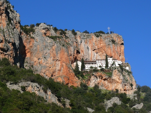 Vymrzlí sjíždíme do nížin, stavíme se v klášteře a pak na známém Limeri. Vylezu Symmorii a Mihy 7a The Revenge of Smart hnedka vedle. Sousední 6c+ opět nepochopí. Vlevo od nás nějaká udatná bojovnice prolézá OAKA I.C. 7c+. Voda teče odspodu nahoru nebo odshora dolů, no konečně první pořádná sprcha. Na dolez Míhy potvrzuje bilanci zapytlením již třetího 6c+ za jeden den. Začíná se divit, že mu prý výlet do Leonidia kdekdo záviděl.