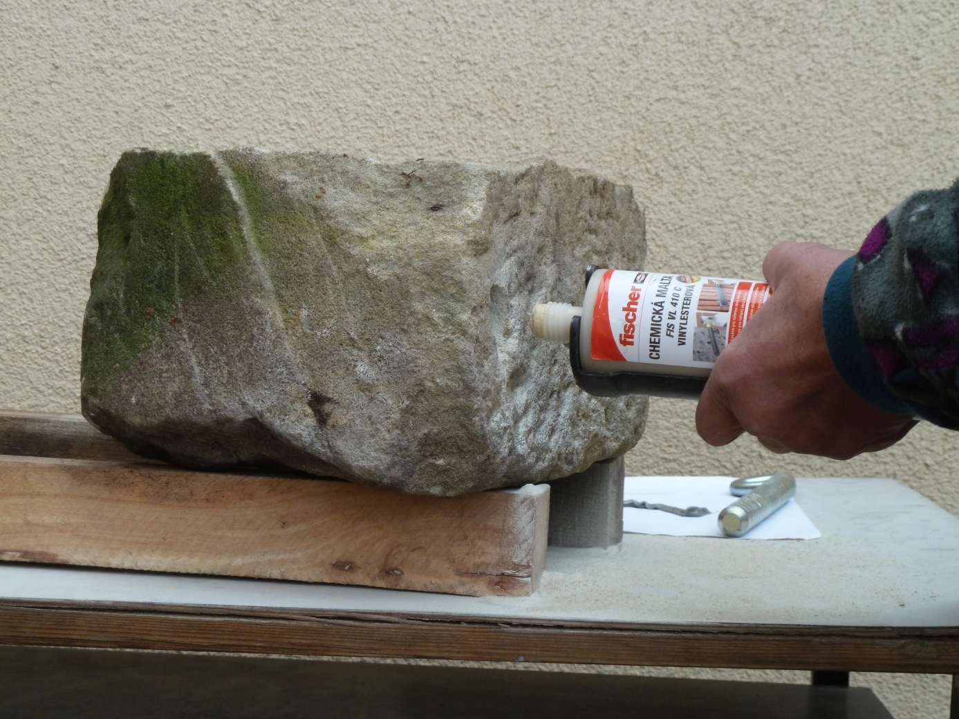 Při školení – semináři – osazování kruhů a borháků na pískovcích - lom Kacanovy- jsme provedli zkoušku způsobu lepení borháků takto: