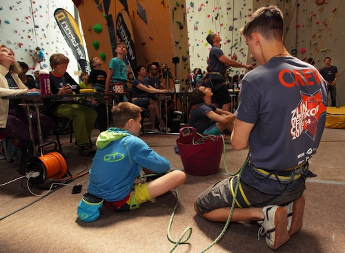 a nejobsazenější kategorie  - dívky U14, kde lezlo 28 dívek, měla cesty odlezené zhruba za 3,5 hodiny.