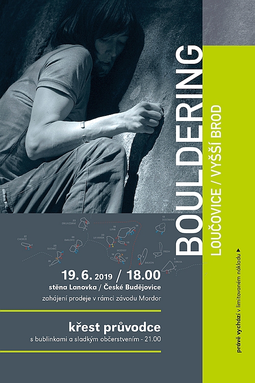 Pozvánka na křest průvodce který se uskuteční v průběhu Boulder závodů Mordor v ČB