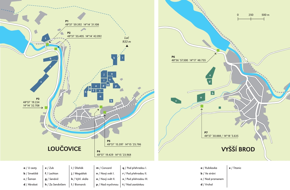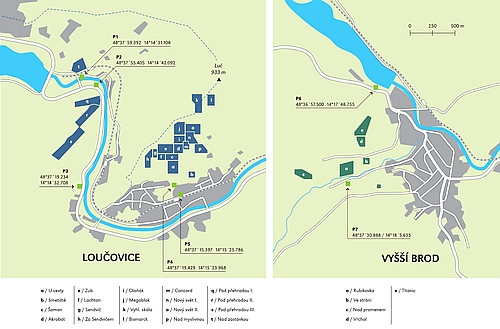 Loučovice jsou rozděleny do 20 sektorů a Vyšší Brod do 5 sektorů.