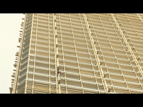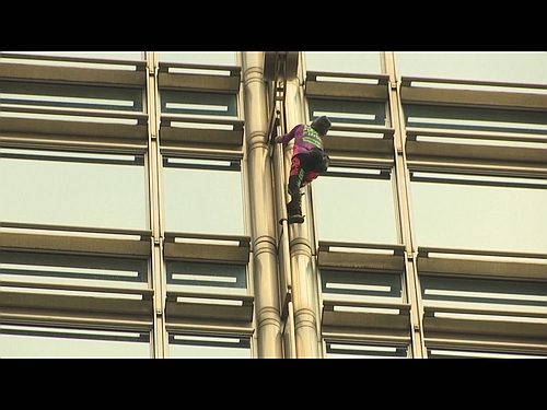 Francouz Alain Robert opět předvedl jeden ze svých bláznivých kousků, když bez jištění vylezl na 62 patrový mrakodrap Cheung Kong Center v Hongkongu.