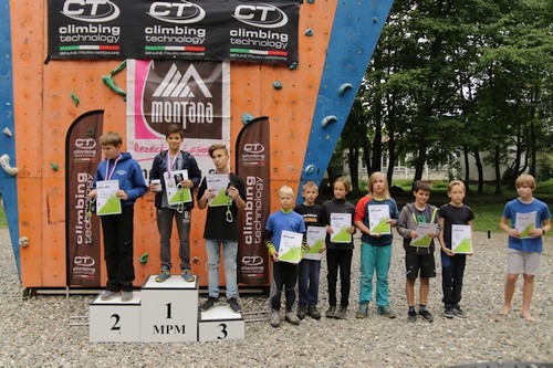 Děti lezly celkem jen 3 cesty v každé kategorii, počasí vypadalo neúprosně a měli jsme obavu, aby se závod stihnul před ohlášeným deštěm. Naštěstí se ani moc dětí nemuselo rozřazovat na dalších cestách, a tak se závod podařilo ukončit, vyhlásit vítěze a předat ceny těsně před prvními kapkami.