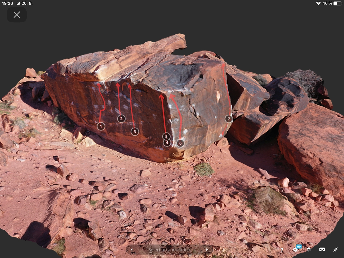 Jeho webová stránka (a asi i brzy mobilní aplikace) umožňuje horolezcům prohlédnout si nákresy lezeckých cest jako nikdy předtím.  Uyeno, který žije v Coloradu, využívá technologii zvanou fotogrammetrie (v podstatě pořizuje spoustu obrázků ze všech úhlů a skládá je dohromady) k vytváření trojrozměrných map lezeckých stěn.