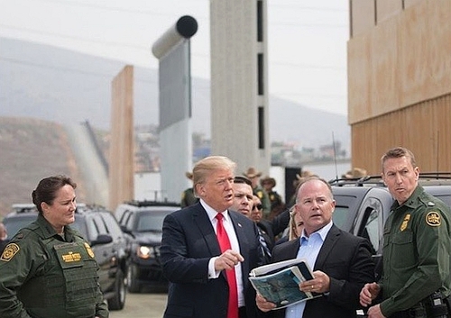 President Trump neměl šťastnou ruku při výběru “nepřekonatelné“ zdi. Hladká v pozadí s válcovým zakončením by jistě všem volným lezeckým pokusům odolala. Místo toho se prosadila sloupová s hladkou vrcholovou deskou