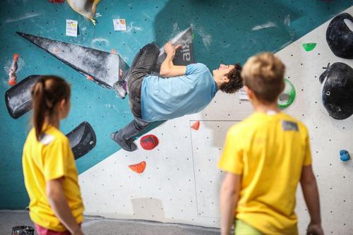 Po nejmladších začal trénink pro vítěze kategorií U12 a U14. S těmihle bombery už si nezadá kdejaký dospělák. Však také přítomní lezci z řad veřejnosti často jen nevěřícně koukali, co všechno tihle mlaďoši dokážou. Takže se zkoušely těžké bouldery, připojil se i Kuba Konečný a spolu s Adamem dětem bouldery průběžně přestavovali a upravovali, aby se daly zkoušet další a další věci. Děti si braly jejich rady k srdci a s každým dalším pokusem se jim daná technika nebo krok dařily o něco líp.