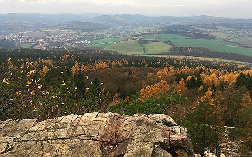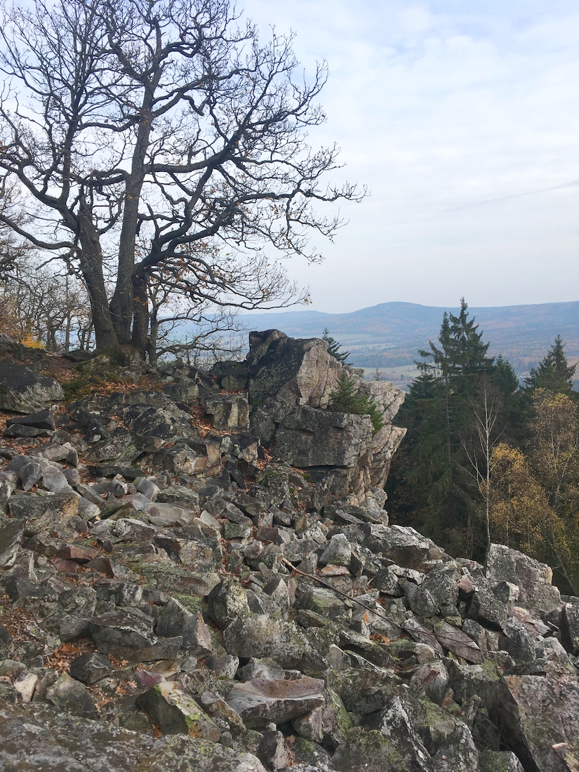 Pohled suťovisko na hřebenu před skalami (hi res)