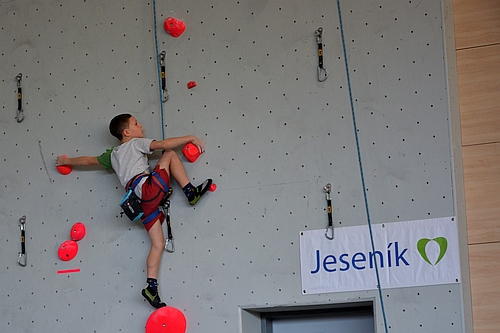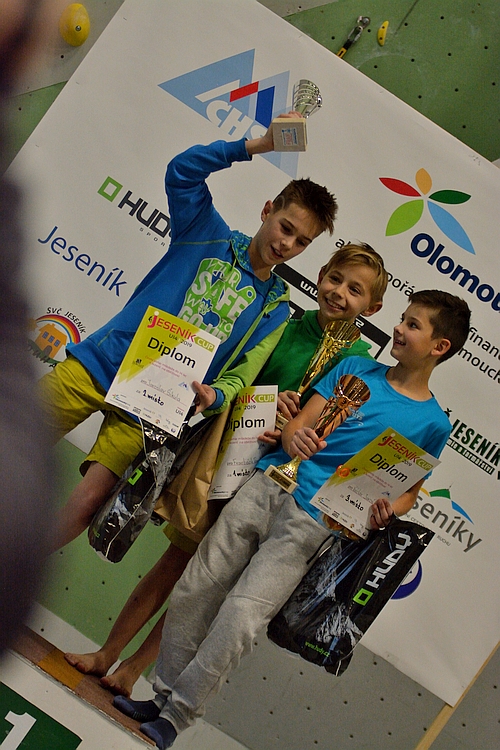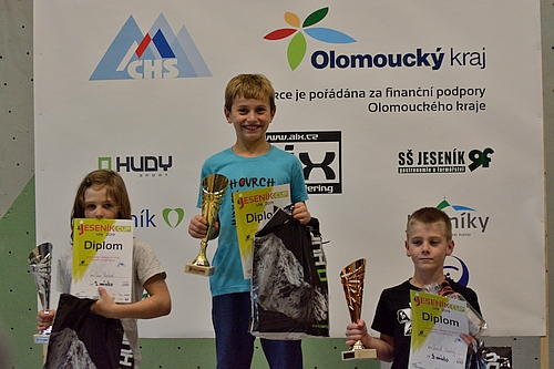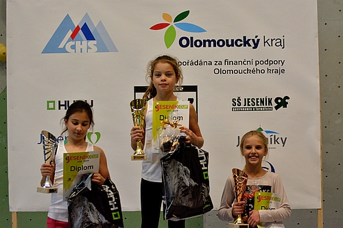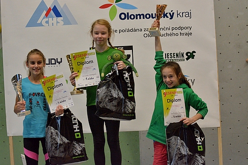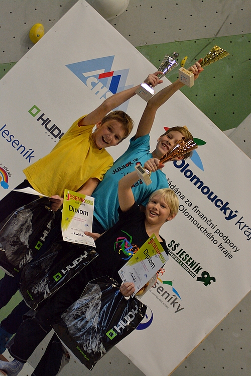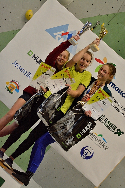 A co ve finále? Všechny cesty byly postaveny v tom největším převisu, který jesenická stěna může nabídnout o výšce přes deset metrů. Stavěči mladé lezce rozhodně nešetřili. Ve stěně se střídaly oblé chyty s lištami a silové kroky se měnily v technické pasáže a zpět. Výsledné pořadí na bedně potom vypadalo takto: