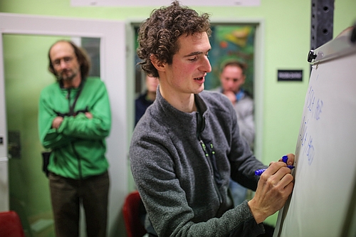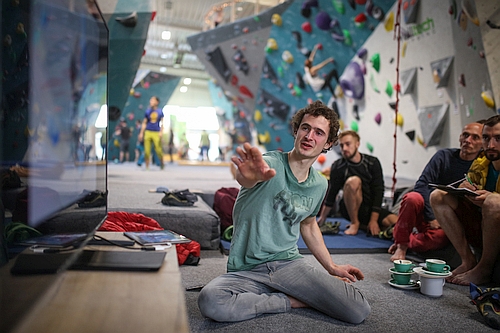 V pátek po krátkém seznámení začal Adam s prezentací, ve které promítl své lezecké začátky a vysvětlil na svém příkladu, proč dělá věci, jak dělá a jak vnímá dětské lezení a případně i dětský trénink.