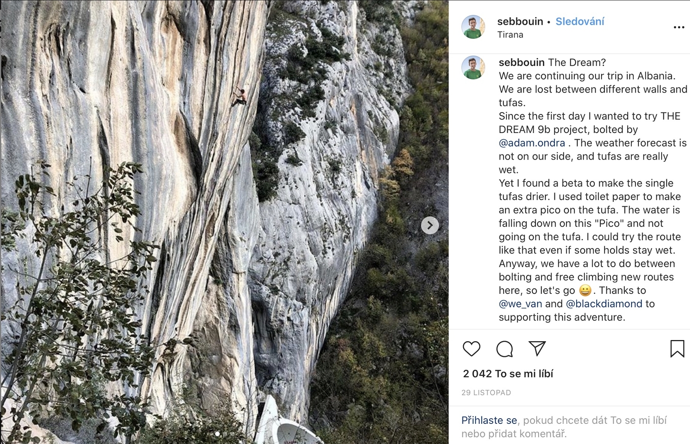 Francouzský lezec Seb Bouin během své cesty po Albánii přelezl v rozvíjející se oblasti Brar cestu The Dream, 9b.
