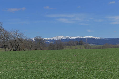 Cestu známe, oba jsme ji proběhli již nesčetněkrát. Medvědín, Svinské louže, Šmídovka, Vrbatka a dál na Harrachovy kameny. Dnes je to ale trochu jiné. Ten umouněný jarní sníh si tak nějak víc užívám a co chvíli vyhlížím do dálky za Kotel.