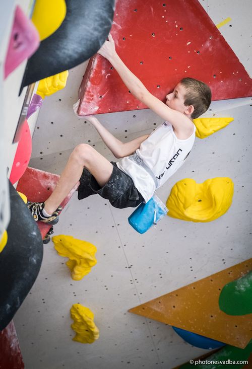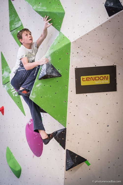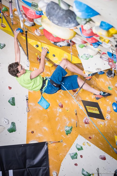 Na rozdíl od nás na baru se s tím mládežníci na stěně nepárali a užívali si na max. lezení na obtížnost od Silvie a Lucky Rajfových, bouldry od Davida Kozla a Radovana Součka i speciálně pro závod postavenou nestandardní rychlostní cestu s regulérní časomírou. Děkujeme Štípkům za zapůjčení.