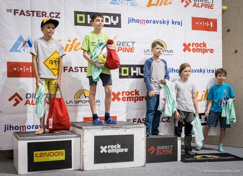 Vyhlášení proběhlo podle časového harmonogramu v 17:30 a ceny od našich partnerů ROCK EMPIRE, TENDON, DIRECT ALPINE a HUDY si v každé kategorii odneslo 5 nejlepších závodníků. Za stávající celkové ekonomické situace pak velký dík patří městu BRNO a ČHS – komise mládeže, jejichž finanční podpora vůbec realizaci závodu umožnila.
