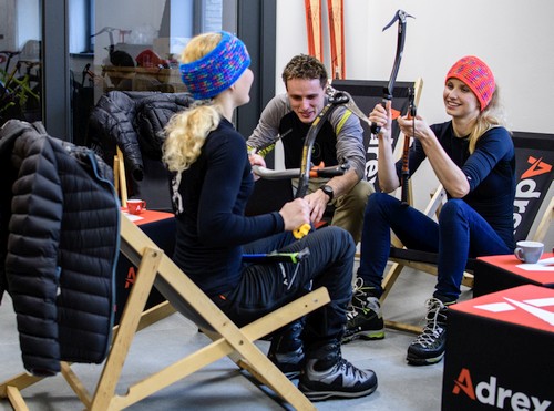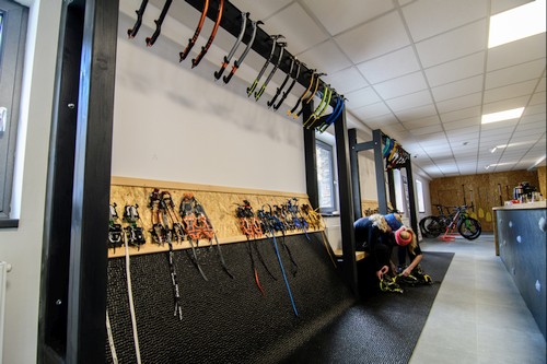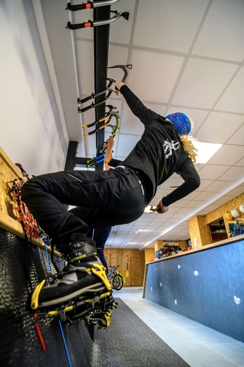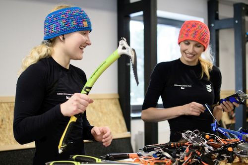 Nikde jinde nenajdete cepíny a mačky všech světových výrobců v jednom regálu vedle sebe, navíc důmyslně postaveném tak, abyste mohli i v teple půjčovny zkoušet, jak vám geometrie cepínů a tvar maček sedí. Vše si následně můžete za velmi přátelské ceny půjčit a v praxi vyzkoušet na ledové stěně, která snad nebude mít tuto zimu nouzi o mrazivé počasí.