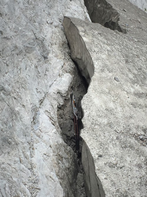 U nástupu byla poznámka "Wintersportgeräte" - vzhledem ke sněhovému poli na nástupu jsem myslel, že snad bude potřeba nějaká zimní výbava, takže jsem přihodil do kufru alespoň zimní kladivo. Vězte, že to není potřeba, ale ta poznámka znamená, že na nástupu je přivrtán pár skialpových lyží, pro lepší orientaci při hledání prvního nýtu. Kdyby jste je nenašli, znamená to, že sněhové pole ještě nedostatečně odtálo.