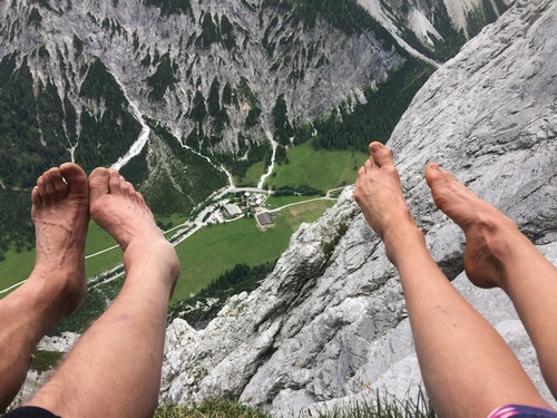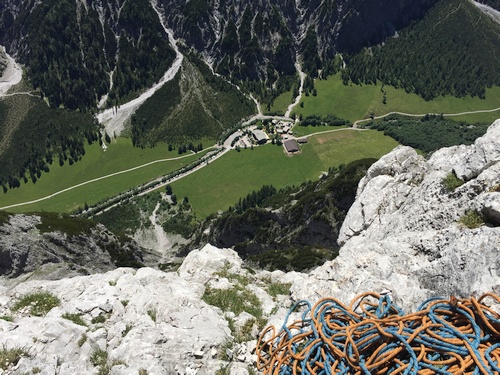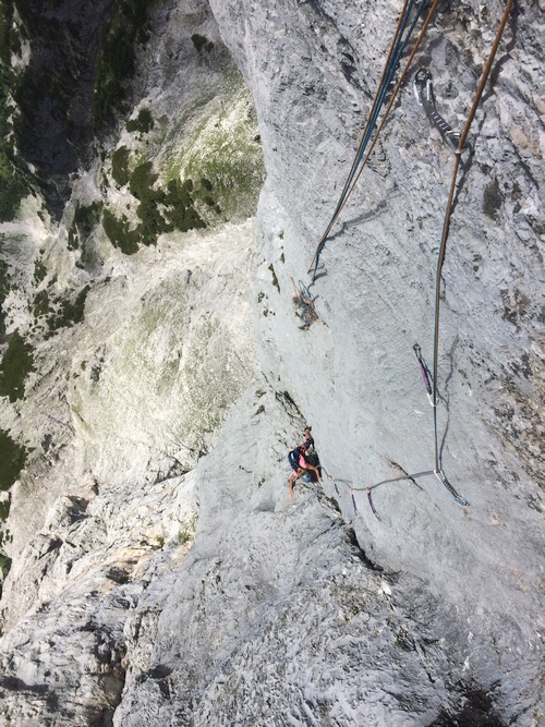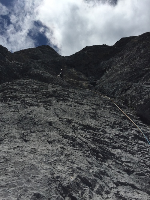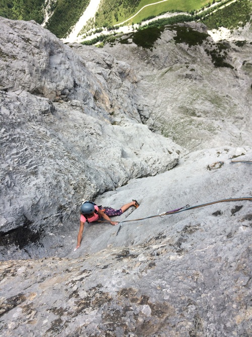 Když už si vyberete cestu, která má 32 délek, musí to mít nějaký důvod. My máme rádi dlouhé cesty, tady se ještě přidalo doporučení od přátel, dobrá předpověď a k tomu délka nástupu cca 5 minut od auta - tomu se snad v Alpách ani nedá věřit.
