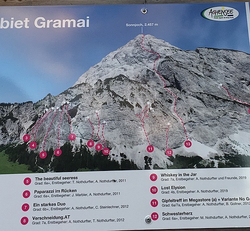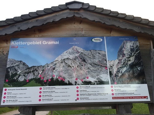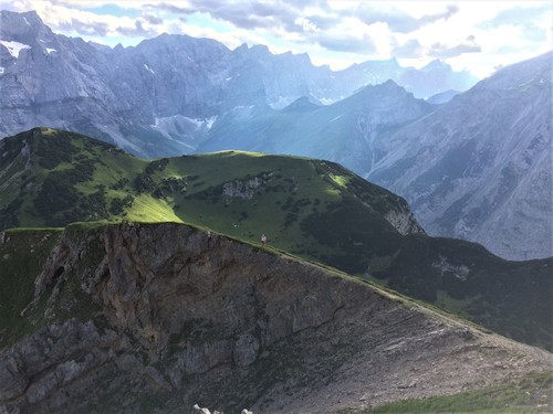 Sestup - počítejte 2 hodiny, ale orientačně je jednoduchý, po turistické značce. V případě časové tísně lze i s čelovkou. Lepší je dát si pivo na chatě Gramai Hochleger, než dole ve čtyřhvězdičkovém hotelu. Sestup je v podstatě krásný a příjemný, výhledy úžasné a motivační, kamzíci vás budou zdravit, ale také svým prskáním dávat najevo, že v pozdních hodinách, kdy sestupujete, je rušíte z večerního klidu.