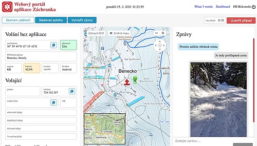 Ani v době koronavirové pandemie ale tým vývojářů nepřestal s dalším vylepšováním systému aplikace Záchranka. Po představených videopřenosech z místa události na dispečink zdravotnické záchranné služby (září 2020, video zde: https://youtu.be/jbj8VOqtIXs) dál rozvinul a přizpůsobil již využitou technologii právě pro horské záchranáře. Ti tak mají nově k dispozici „Portál aplikace Záchranka“ – pokud jim přijde nouzové volání z aplikace, uvidí ho jak ve svém interním systému, tak právě v Portálu. Ten navíc můžou využít k dalšímu spojení s volajícím, bez ohledu na to, zda má aplikaci Záchranka či ne. Systém umožňuje zahájení kontinuálního sledování polohy člověka v nouzi, komunikaci pomocí chatu nebo získání fotografie z místa události.