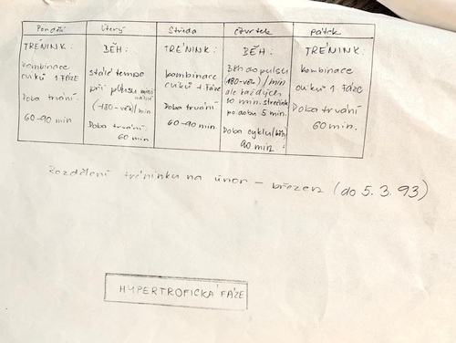 PS od Čaje: K Ríšově vyprávění přikládám scan francouzského tréninkového plánu, podle kterého spolu s Bobuláčem trénovali: