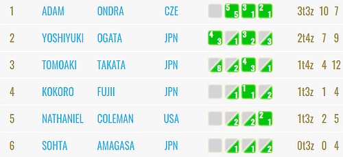 Adam Ondra vyhrál dnes závod Světového poháru v boulderingu v Meiringenu ve Švýcarsku. Jako jediný dal ve finále 3 topy ze 4 bouldrů. Druhý byl Japonec Yoshiyuki Ogata, třetí jeho krajan Tomoaki Takata.