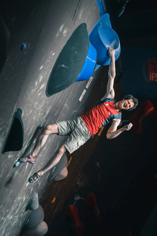 Adam Ondra na Světovém poháru v boulderingu v Meiringenu 2021 (foto: Petr Chodura)
