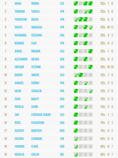 V semifinále pak skončili olympionici Alexander Megos (GER) 8. a Alexey Rubtsov (RUS) 17.