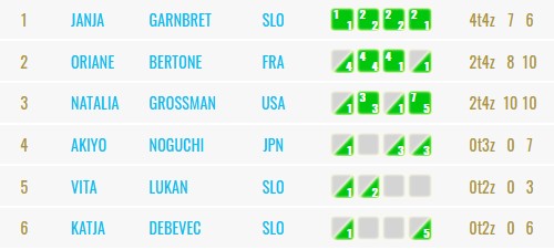 V ženách byla v semifinále nejlepší Slovinka Janja Garnbret. Jediná dala všechny 4 topy.